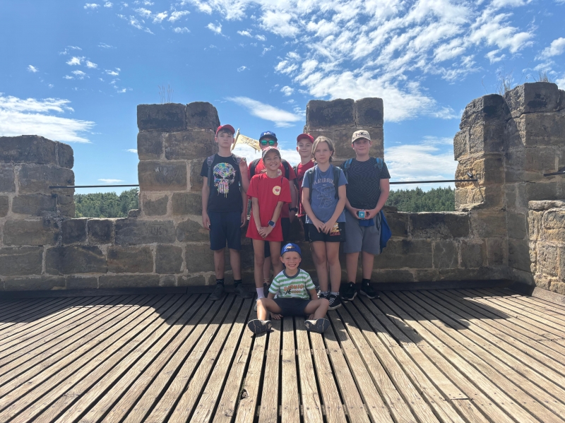 Rozdělili jsme se na tři skupiny. První skupinka – ti nejodvážnější – se vydala na pěší túru po okolí. Šlapali lesními cestami, osvěžovali se v potůčcích a nakonec dorazili až na pohádkový hrad Helfenburg.